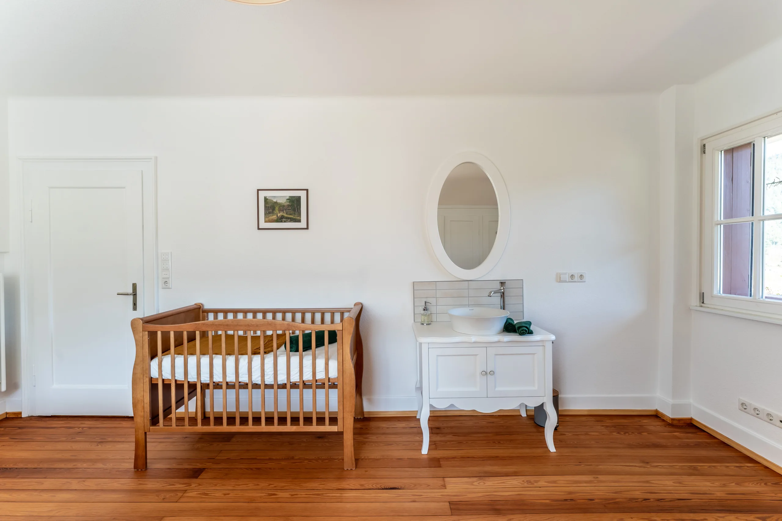 - Steinades Bühl: Double bed (180×200 cm), washbasin, baby bed, desk, built-in wardrobe