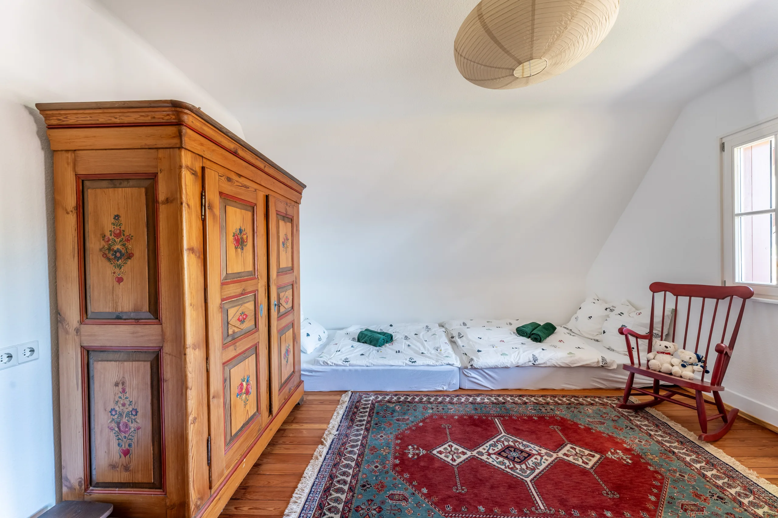- Moserstein: Two double beds (each 140×200 cm), ideal for children or adults; desk, original farmhouse wardrobe